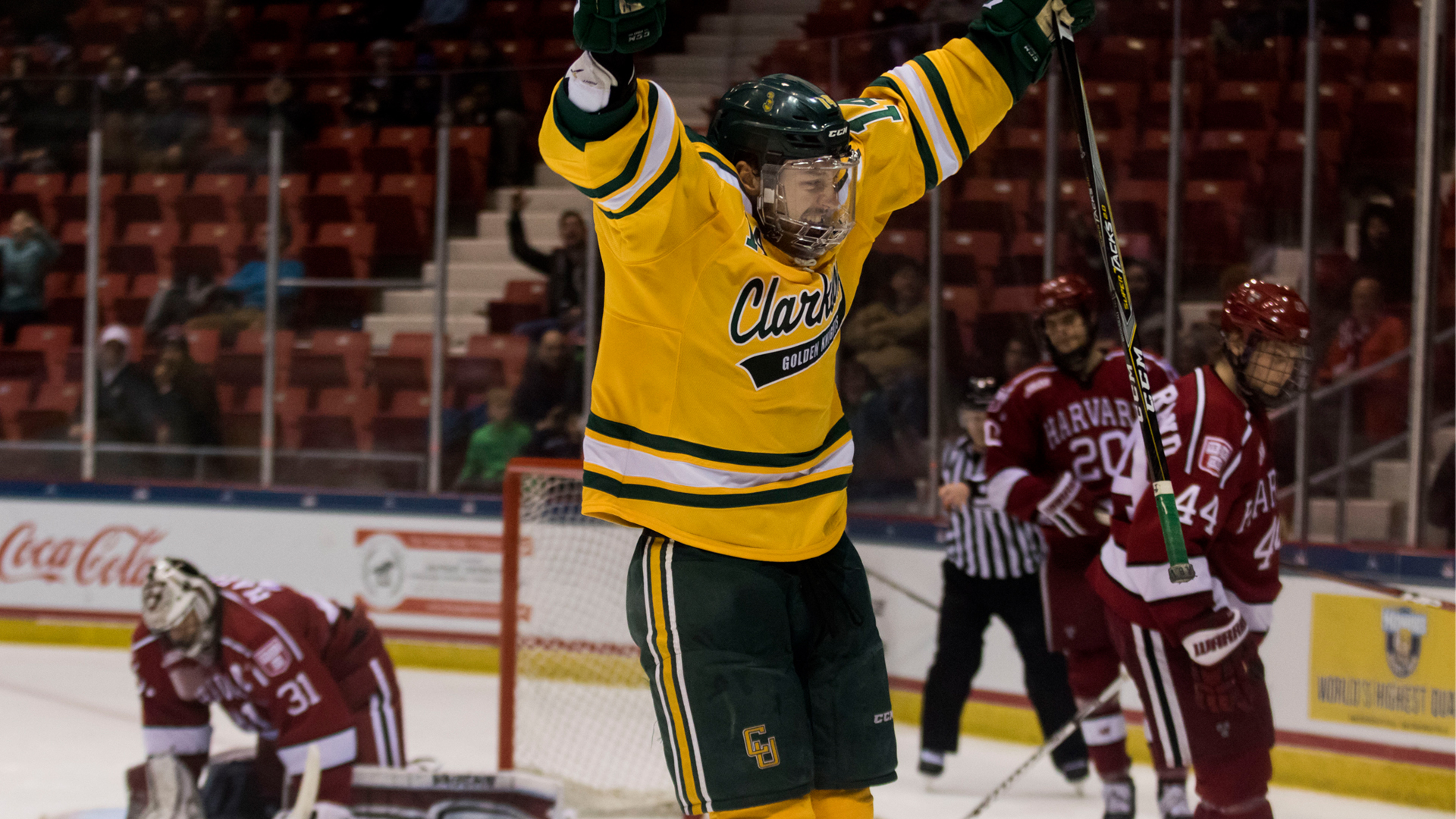 Kielly finished with 29 saves for the Knights, while Merrick Madsen denied 31 shots for Harvard. Haralds Egle assisted on three goals while both Rempal and Brosseau scored a goal and an assist each. Clarkson owned a narrow 36-33 edge in shots and finished 2-for-6 on the power play after going scoreless in its first three chances. Harvard was 2-for-4 on the power play.