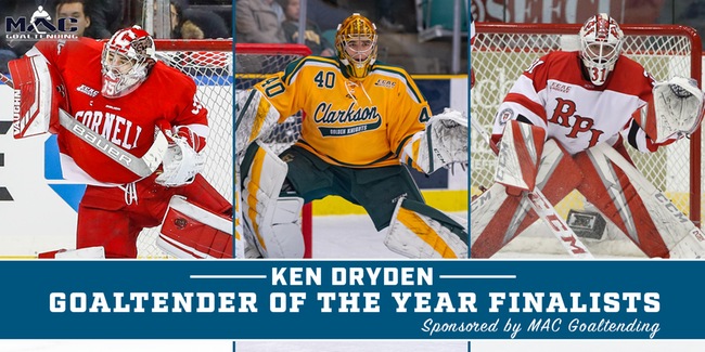 ALBANY, N.Y. – ECAC Hockey has announced the finalists for the Ken Dryden Goaltender of the Year award (sponsored by MAC Goaltending), and Matthew Galajda (Cornell), Frank Marotte (Clarkson), and Owen Savory (RPI) have all been honored.